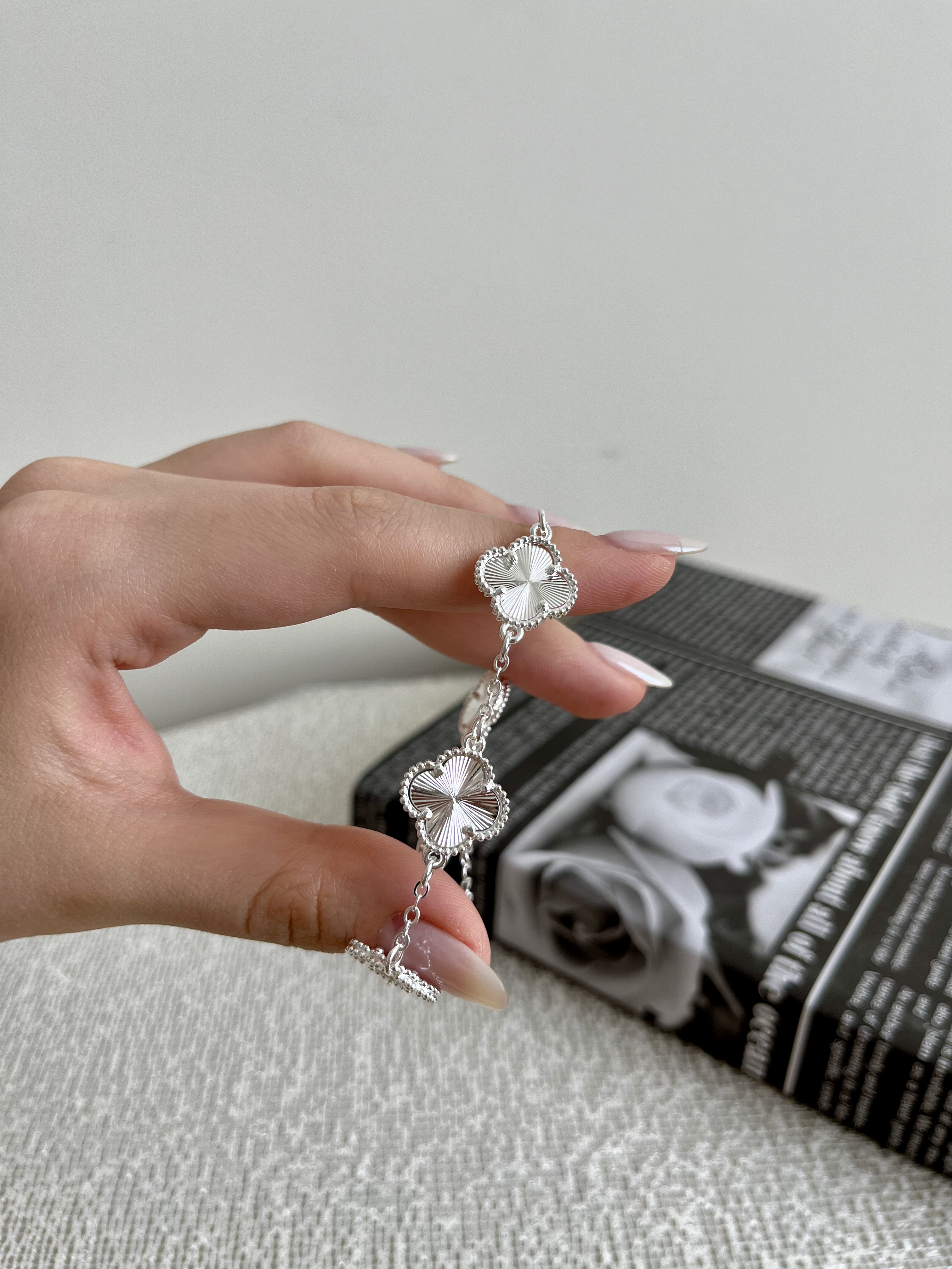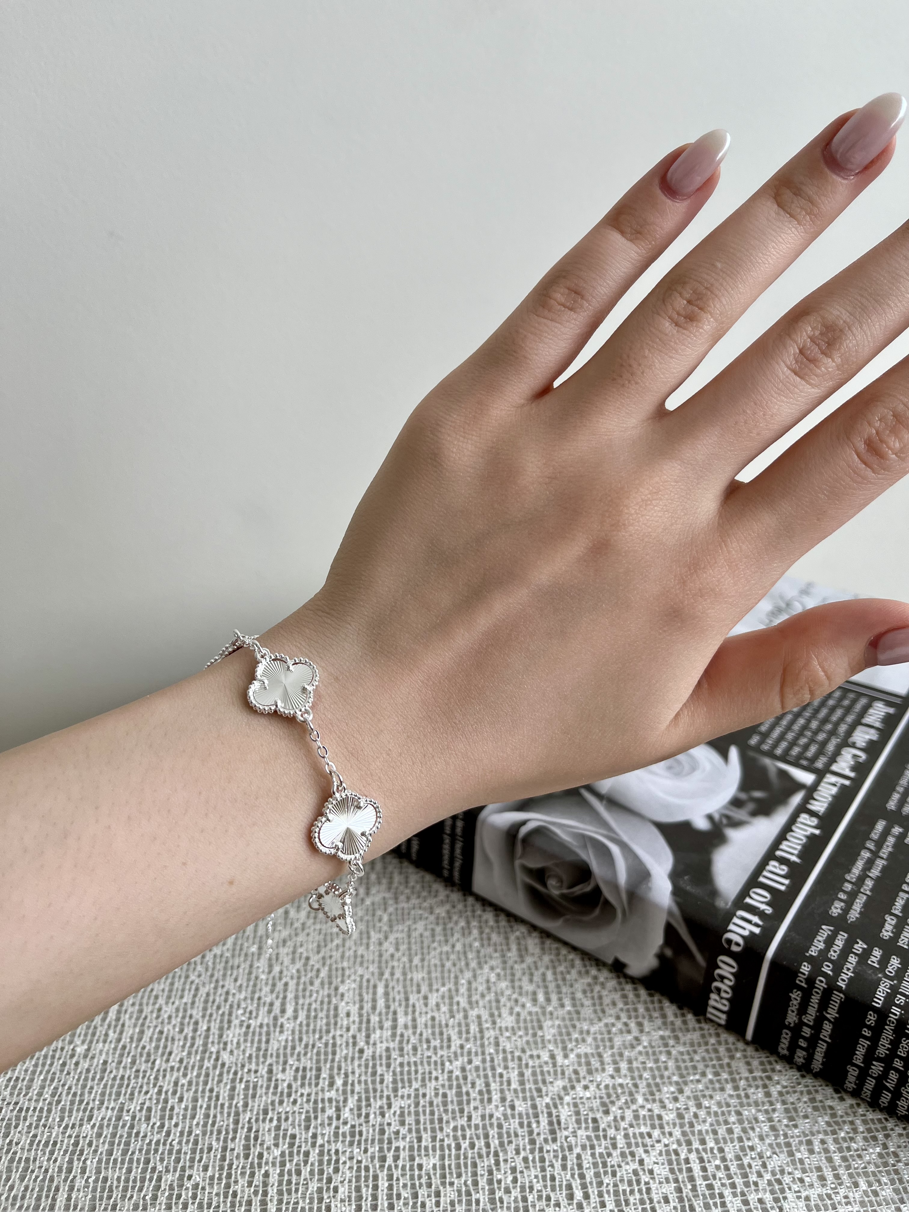 دستبند گل ونکلیف دخترانه آبکاری نقره
